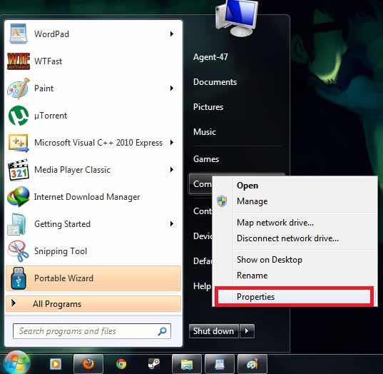 - Now Go to Start and Then Right Click on My Computer and Select Properties as shown below in the Image.